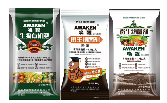 唤醒系列生物菌肥、有机水溶肥是山东中新农业发展有限公司为响应国家提出的推行绿色发展方式,增强农业可持续发展能力,推进农药、化肥零增长行动等涉农新政研发推出新一代功能型生物有机肥料。产品以安全健康、土壤改良、绿色环保、增加产量,改善农产品品质为特色,涵盖生物有机肥,微生物菌剂,生物有机水溶肥等,能够满足国家对实现绿色农业可持续发展的迫切需求,已得到了广大用户的高度认可,荣获“2017年度中国十佳有机肥”称号,并已通过“有机农业生产资料认证”。