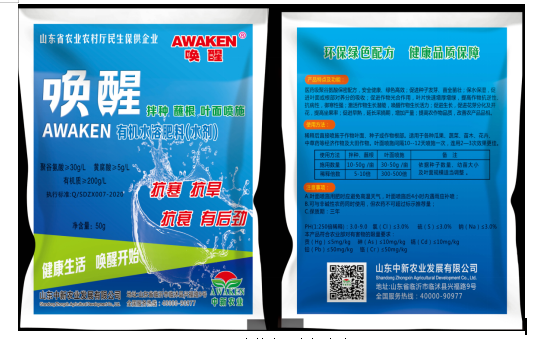 唤醒有机水溶肥是山东中新农业发展有限公司推出的以安全健康、土壤改良、绿色环保、增产高效为特色的功能性有机水溶肥料。产品富含聚谷氨酸、腐植酸、黄腐酸、活化酶、多重螯合氮磷钾及锌、硼、锰、铜、铁、钼等营养成分。其核心原料—-多糖、聚谷氨酸是山东中新农业发展有限公司与山东大学战略合作,采用国家糖工程技术研究院先进制备工艺共同研制生产。配方调制缜密,营养均衡全面,应用广泛,功效独特。