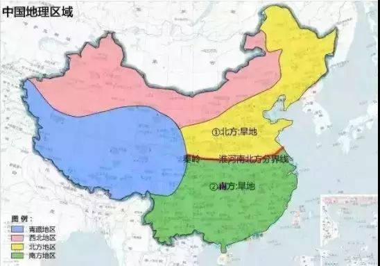 南边-红色。南方闷热潮湿而多雨,大量易溶于水的土壤矿物质,受雨水冲刷而流失,最终剩下氧化铁和氧化铝(Al2O3),因而呈现红色。